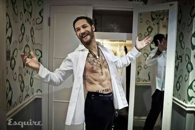 tom-hardy-esquire1Tom Hardy is not a man who’s averse to getting his kit off, and for that we can all be thankful. The latest excuse he’s found to get his shirt off is for the cover of Esquire magazine.