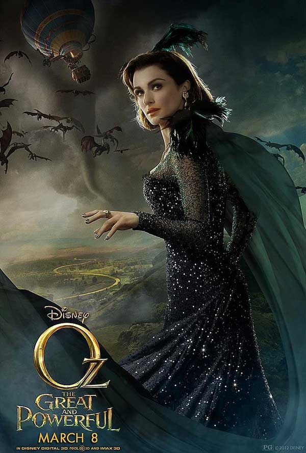 Here’s the synopsis: ‘Disney’s fantastical adventure “Oz The Great and Powerful,” directed by Sam Raimi, imagines the origins of L. Frank Baum’s beloved character, the Wizard of Oz. When Oscar Diggs (James Franco), a small-time circus magician with dubious ethics, is hurled away from dusty Kansas to the vibrant Land of Oz, he thinks he’s hit the jackpot—fame and fortune are his for the taking—that is until he meets three witches, Theodora (Mila Kunis), Evanora (Rachel Weisz) and Glinda (Michelle Williams), who are not convinced he is the great wizard everyone’s been expecting.